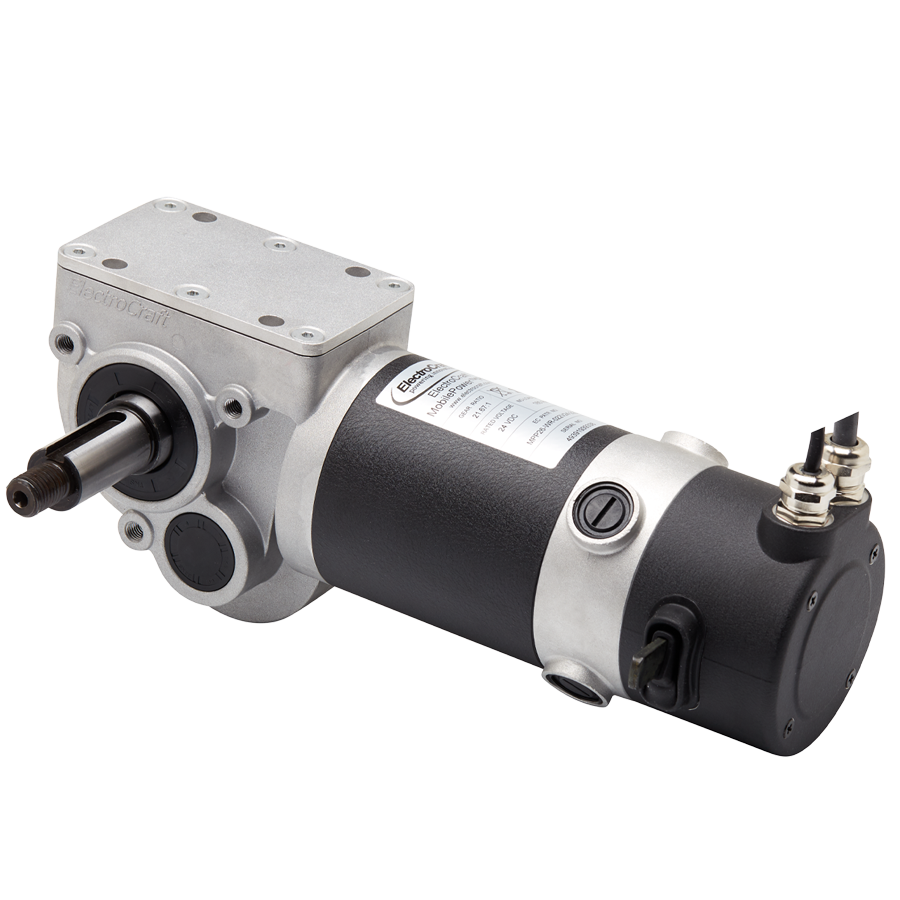ElectroCraft's MPP26 integrates a 4-pole PMDC brush motor with a very robust 2-stage right-angle worm gearbox, designed for industrial applications, adding industrial grade cabling plus encoder feedback options to support positioning capability.