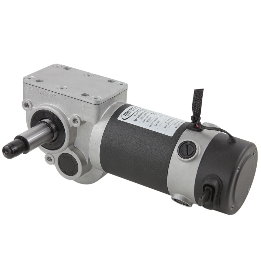 ElectroCraft's MPP36 integrates a 4-pole PMDC brush motor with a very robust 2-stage right-angle worm gearbox, designed for bariatric medical mobility applications.