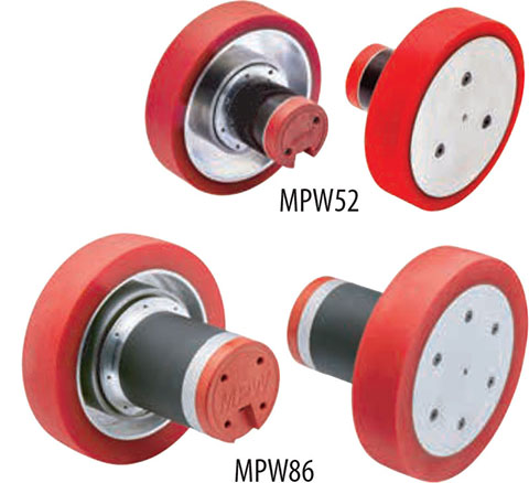 ElectroCraft MobilePower™ MPW series wheel drives feature an integrated design that provides increased performance, efficiency, and reliability at an affordable price compared to traditional motor/gearbox/wheel combinations. The MPW incorporates a high torque density brushless DC motor with a heavy-duty planetary gearbox mounted inside the hub of an aluminum wheel with polyurethane tread. Available in two motor frame sizes with a variety of configurations, including winding voltage, gear ratio, wheel size, encoder feedback and electromagnetic brake options.
