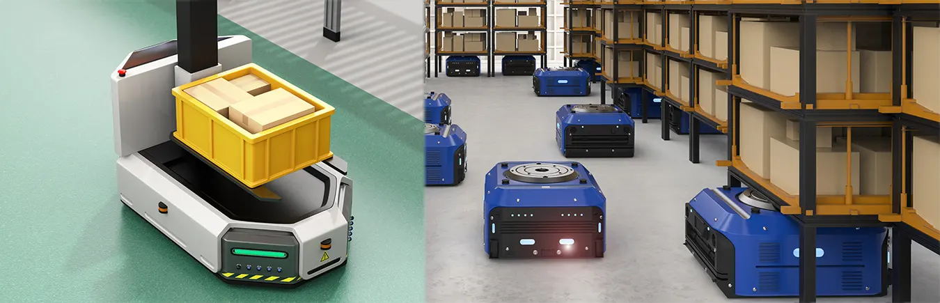 Figure 1. AGVs (left) and AMRs (right) require high-torque, high-efficiency and compact drivetrain solutions.